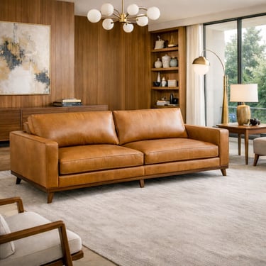 Exposed wooden legs give a light, mid-century vibe. Tapered or metal legs feel sleek and contemporary. Hidden bases add weight and formality — great for a leather bench sofa that grounds the room.