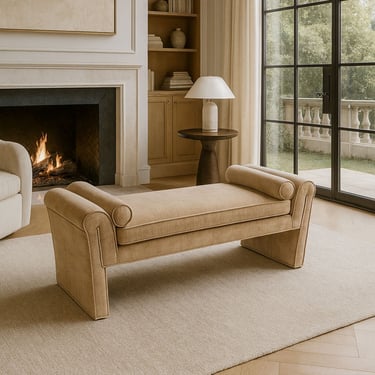 A bedroom bench brings timeless structure to the end of your bed while offering everyday function — whether it’s for seating, storage, or simply a place to lay out tomorrow’s outfit. If your style leans more minimal, opt for a neutral bench with clean lines or a sleek backless sofa bench. Prefer something cozy? Go for tufted upholstery with bench seat cushions, warm tones, or a rich texture like velvet or boucle. A bench grounds the room and bridges the space between the bed and the rest of the room with quiet sophistication. For added flair, consider furniture with buttons or custom bench cushions that match your bedding.